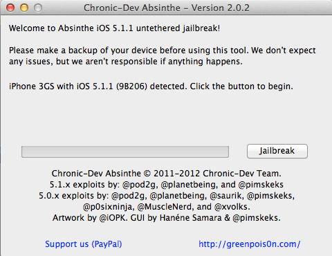 Absinthe 2 is another jailbreaking app, similar to redsn0w, it is developed by the Chronic-dev Greenpois0n team and works on certain iOS devices running 5.1.1 – devices that can be jailbroken are listed below, this guide shows how to back up your device and jailbreak your iOS device with Absinthe v 2.0.4.