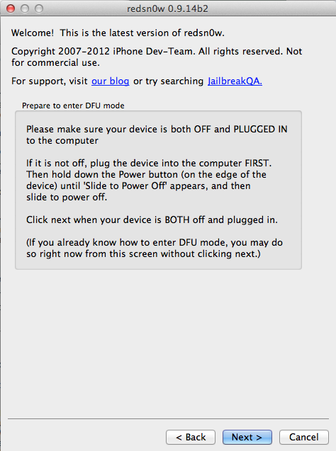 – with the device connected and turned off – when you click next  you go through the DFU mode process