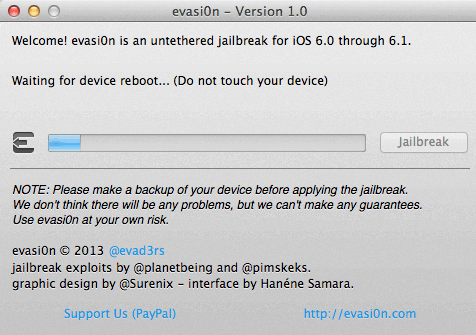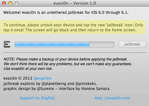 During the process you will be prompted by evasi0n to interact with the iPhone