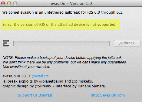 And Evasion gives me error “The Attached device is not activated you need to activate it before you can apply the jail break…!!