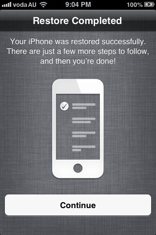 The process completes in iTunes, now just finish the iPhone set-up on the actual device as below: